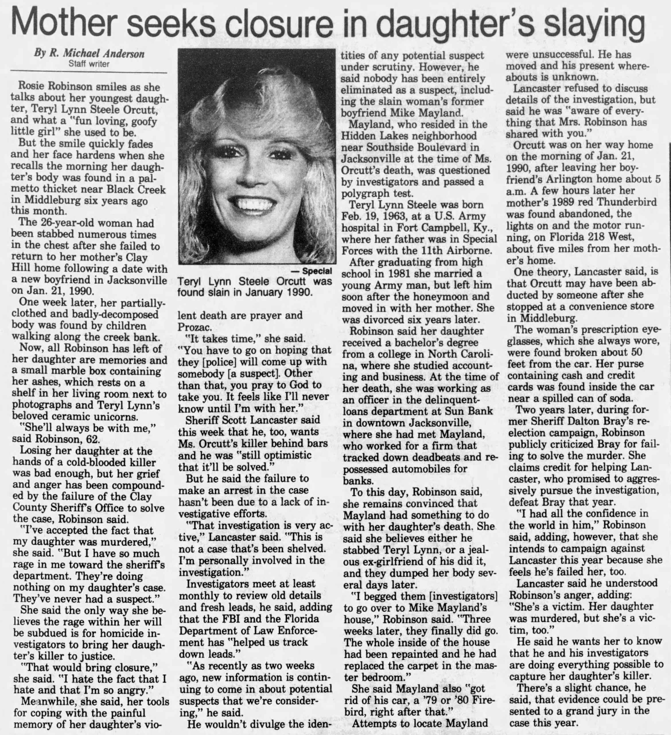On January 21, 1990, Teryl left her boyfriend’s house in Jacksonville and headed for her Middleburg home. But she never made it.