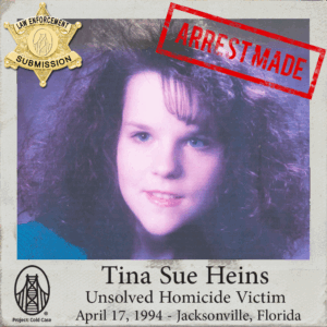 If you have any information on the unsolved murder of Tina Sue Heins, please call the Jacksonville Sheriff’s Office at (904) 630-0500. To remain anonymous and possibly be eligible for a $3,000 reward, call First Coast Crime Stoppers at (866) 845-TIPS.
