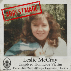 On August 19, 2021, the Jacksonville Sheriff’s Office announced an arrest in the case of Leslie McCray after 36 years. JSO identified David Nelson Austin after re-running DNA evidence collected at the scene.