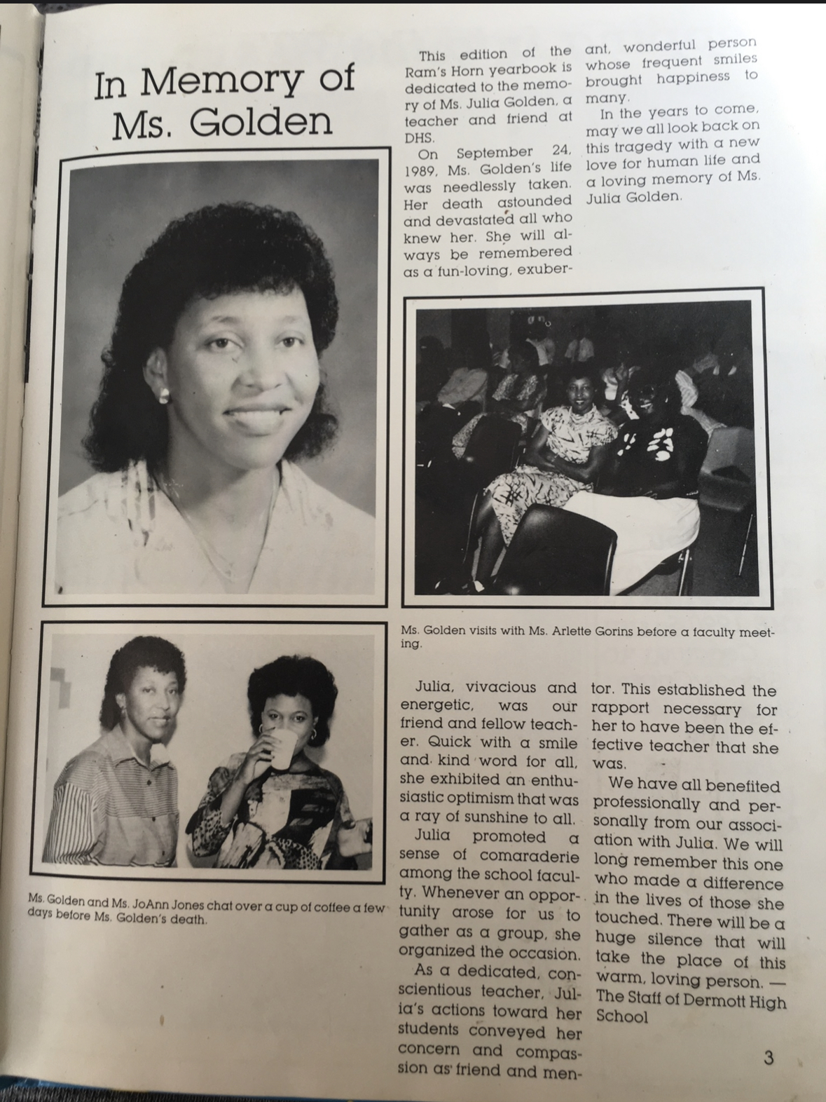 Julia was well known in McGehee. She taught special education at Dermott High School, working with 33 students—many of whom needed extra support. “She taught a few subjects, including math,” Vanessa said. “From what I know, she just believed there was no excuse for anyone not to reach their full potential. She had a heart for people who needed a little more help.”