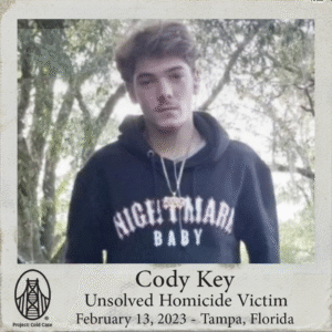 That infectious smile disappeared forever on Valentine’s Day of 2023. Cody Key, 19, was shot while walking near the intersection of N 49th Street and E Diana Street in Tampa, Florida, around 11:30 pm on February 13, 2023. He was transported to a local hospital, where he later succumbed to his injuries. Cody’s murder is still unsolved.
